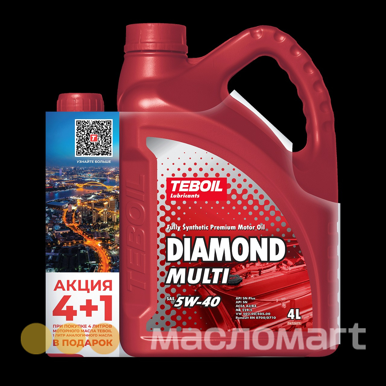 Премиальное синтетическое моторное масло обеспечивает надежную защиту даже при самых долгих интервалах замены масла, рекомендованных автопроизводителями. Teboil Diamond Multi SAE 5W-40 защищает современные бензиновые двигатели с турбонаддувом и прямым впрыском топлива от преждевременного зажигания на низких оборотах (эффекта LSPI). Благодаря сочетанию синтетического базового масла и усиленного пакета присадок моторное масло Teboil Diamond Multi SAE 5W-40 эффективно даже в тяжелых режимах эксплуатации: при экстремальных погодных условиях, движении в режиме «старт-стоп», движении в плотном транспортном потоке, частых поездках на короткие расстояния.