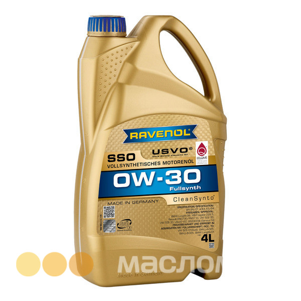 RAVENOL SSO SAE 0W-30 – полностью синтетическое легкотекучее моторное масло, изготовленное с применением технологии CleanSynto® для легковых бензиновых и дизельных моторов с и без турбонадува и прямым впрыском топлива.