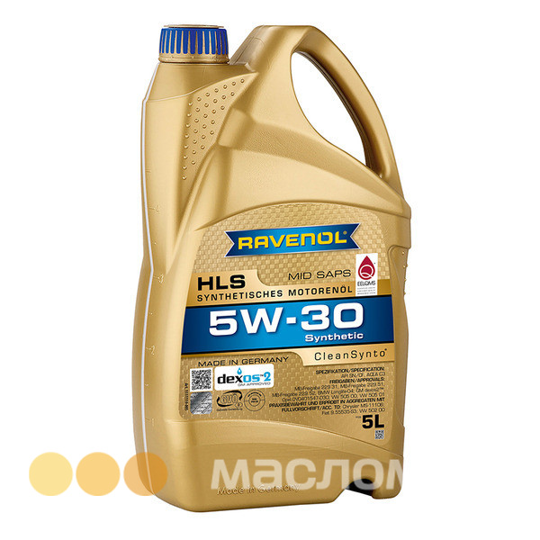 RAVENOL HLS SAE 5W-30 синтетическое легкотекучее Mid SAPS моторное масло, изготовленное с применением технологии CleanSynto® для легковых бензиновых и дизельных двигателей с и без турбонаддува и прямым впрыском топлива.