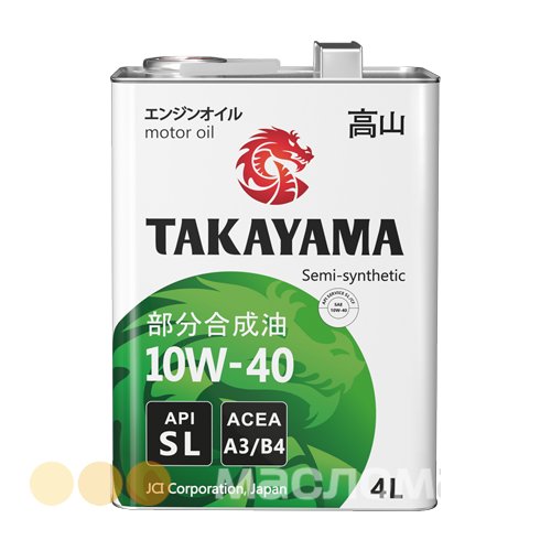 Полусинтетическое всесезонное моторное масло Takayama SAE 10W-40. Произведенное из высококачественных компонентов и современного пакета присадок. Обеспечивает высокую стойкость к окислительным процессам внутри двигателя, прекрасные смазочные свойства при любых условиях эксплуатации. Может быть использовано в широком диапазоне рабочих температур.